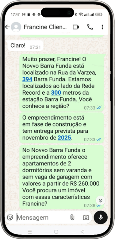 Consulte valores, data de entrega, imagens e condições de pagamento para o Vibra Mooca com nosso assistente virtual com inteligência artificial.